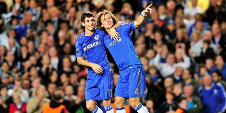 Saat bermain bersama, Luiz dan Oscar pernah mengantarkan Chelsea menjadi kampiun Liga Europa musim 2012-2013. (BOLA/KOMPAS.com)