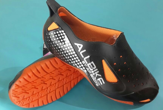 Satu pilihan bisa menggunakan sepatu Allbike. Sepatu boots ini khusus dipakai oleh pengendara sepeda, baik sepeda gunung maupun sepeda motor.