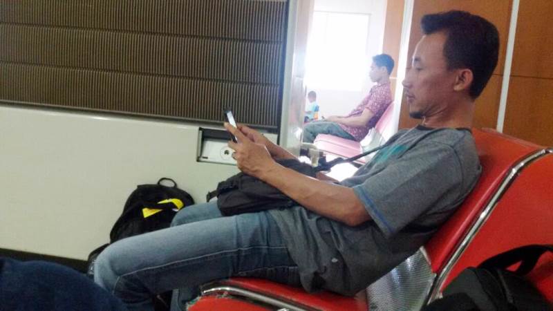 Satu dari beberapa penumpang Lion Air rute Banjarmasin menuju Semarang yang mengalami penundaan penerbangan.