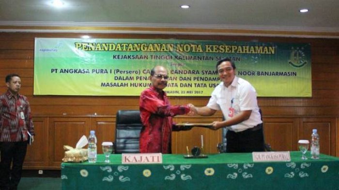 BANJARMASINPOST.CO.ID, BANJARBARU - Kejaksaan Tinggi Kalsel mendampingi PT Angkasa Pura I (Persero) Kantor Cabang Bandara Syamsudin Noor dalam Penanganan dan pendampingan masalah Hukum perdata dan tata usaha negara. Nota kesepahaman pun telah ditandatangani.