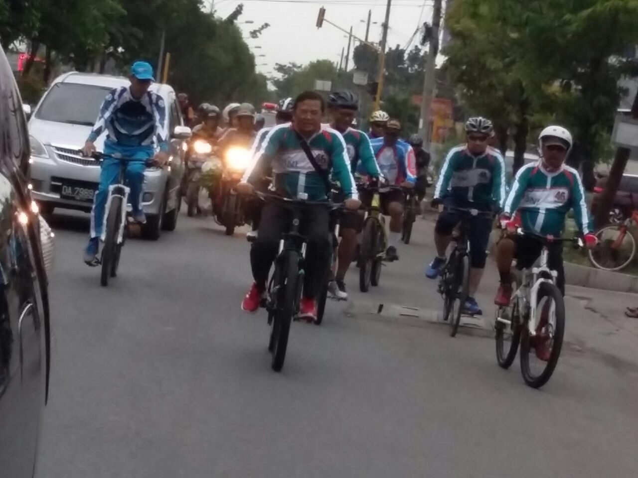 Perkumpulan pesepeda tersebut mengikuti acara Gober 46 Banjarmasin Post yang merupakan rangkaian HUT Bpost 46, Minggu (6/8/2017).