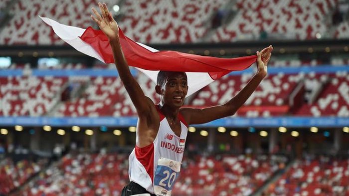 BANJARMASINPOST.CO.ID - Agus Prayogo berhasil meraih medali emas cabang olahraga (cabor) atletik nomor lari jarak jauh 10.000 meter, Jumat (26/8/2017).