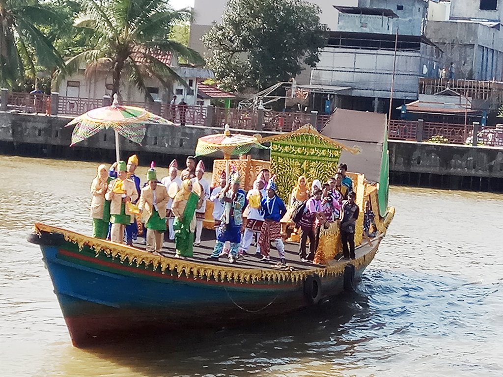 Dari dermaga swiss-belhotel Borneo Banjarmasin, Ibnu dan jajarannya naik perahu ke kelotok ke panggung utama hari jadi ke 491 Kota Banjarmasin.
