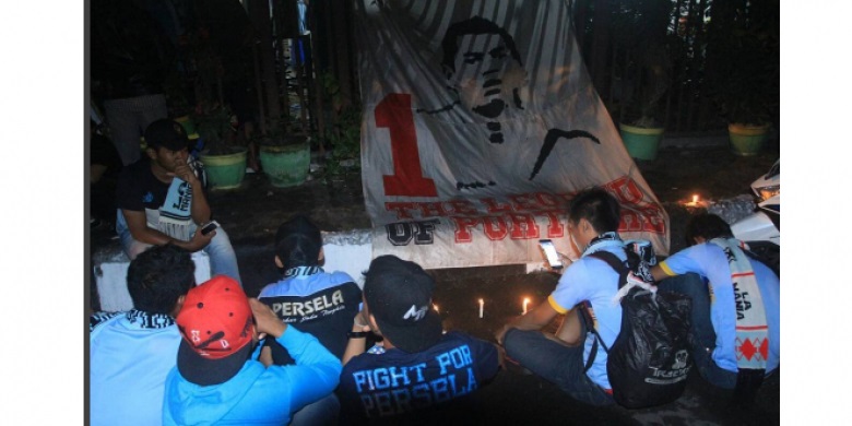 La Mania bersama segenap ofisial Persela Lamongan sempat mengheningkan cipta sejenak untuk mendoakan Choirul Huda.