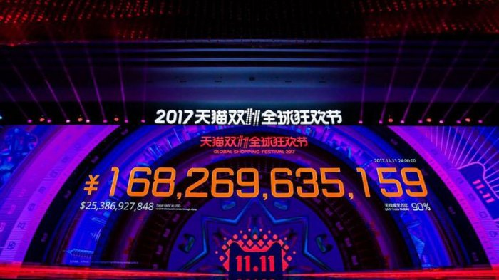 Antusiasme konsumen Negeri Panda ternyata luar biasa. Sejak event belanja online Hari Jomblo dimulai pada Sabtu, 11 November dini hari hingga ditutup pada tengah malam di hari yang sama, Alibaba mencatat nilai transaksi sebesar 168,2 miliar yuan atau lebih dari Rp 341 triiun.