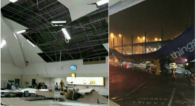 Beberapa plafon di bandara rusak dan menimbulkan kepanikan. Dalam video yang beredar terlihat para penumpang berteriak atas insiden tersebut, Senin (13/11/2017).