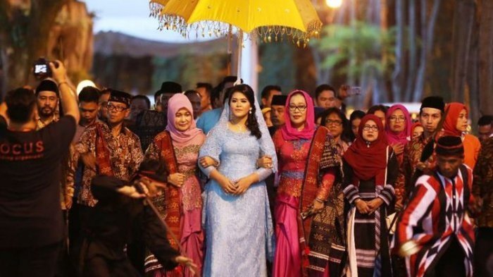 Di resepsi pernikahan Kahiyang padfs 8 November lalu, Kahiyang dan Bobby tampil mengenakan kebaya beludru hitam dalam prosesi sakral itu.
