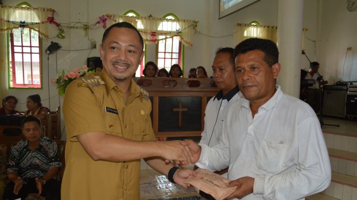 Penyerahan dilakukan secara simbolis oleh Bupati Barsel pada peringatan Natal Bersama Umat Kristiani di Desa Tabak Kanilan, Senin (18/12).