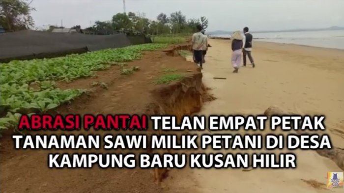 BANJARMASINPOST.CO.ID, BATULICIN - Petani Sawi yang ada di Desa Kampungbaru, Kecamatan Kusan Hilir, Kabupaten Tanahbumbu,  harus kehilangan 4 petak tanaman sawinya setelah tergerus ombak akibat abrasi pantai yang kian menghabiskan bibir pantai.
