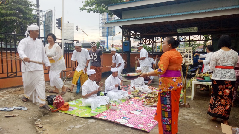 Sebelumnya, pada Jumat (16/3/2018) umat Hindu menggelar upacara mecaru di Pura Agung Jagat Natha.