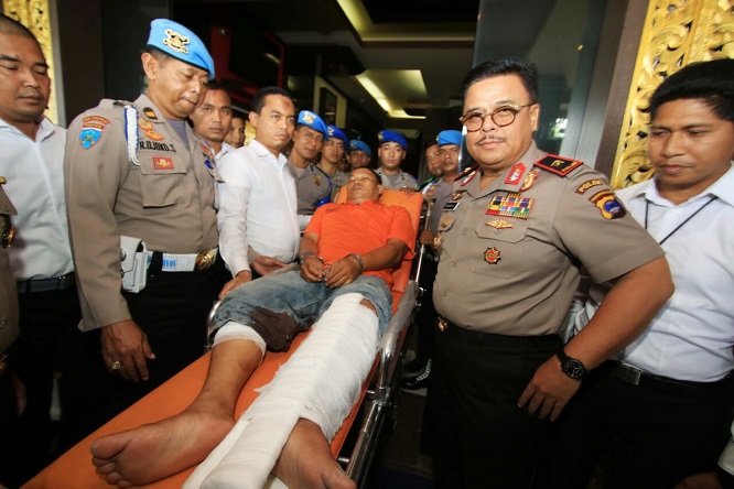 Ia kini tidak hanya meringkuk di sel tahanan saja melainkan kedua kakinya juga dihadiahi tim gabungan dengan timah panas.