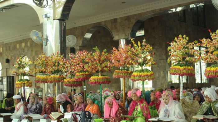 khataman Alquran kali ini dimulai dengan pawai ta'aruf oleh ribuan pelajar yang secara
