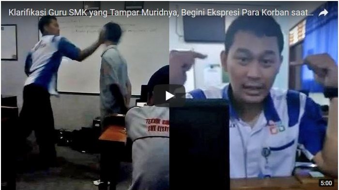 BANJARMASINPOST.CO.ID, PURWOKERTO - Oknum guru pria yang menampar sejumlah muridnya gara-gara sarapan saat jam belajar di sebuah Sekolah Menengah Kejuruan (SMK) di Purwokerto membuat video klarifikasi, Kamis (19/4/2018).