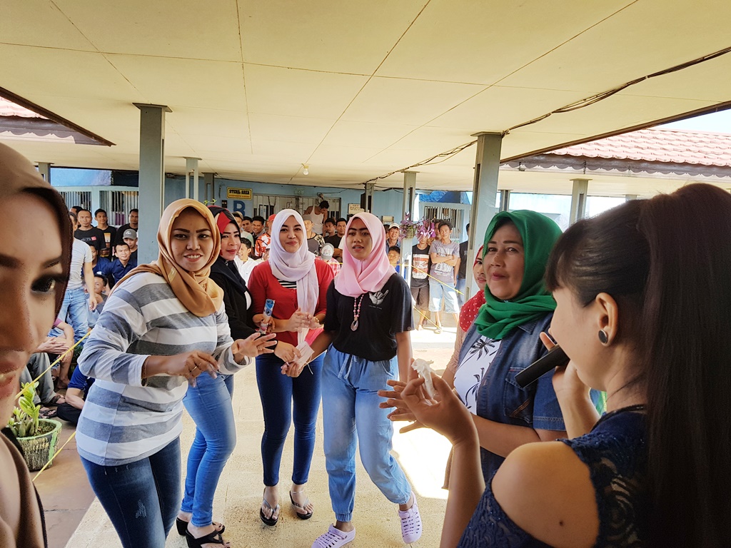 BANJARMASINPOST.CO.ID, PELAIHARI - Lagu dangdut fenomenal Via Vallen berjudul Sayang dinyanyikan bareng warga binaan perempuan ditingkahi joget goyang pinggul menyemarakkan suasana Rumah Tahanan (Rutan) Pelaihari, Jumat (4/5/2018).