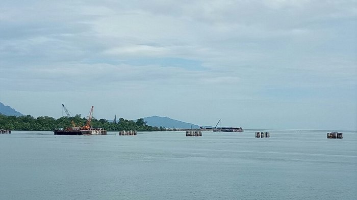 Selain jembatan penghubung ke daratan selesai dikerjakan 2015 lalu, pembangunan juga sudah dikerjakan dalam dua tahun terakhir baru pada pemasangan tiang jembatanlebih kurang 300 meter.