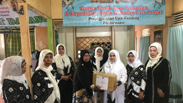 BANJARMASINPOST.CO.ID, BANJARMASIN - Gabungan Organisasi Wanita (GOW) Kota Banjarmasin yang diketuai isteri Wakil Wali Kota Banjarmasin, Hj Siti Fatimah Hermansyah memberikan bantuan ke Pesanggerahan Uma Kandung di Jalan Cendrawasih Banjarmasin, Jumat (18/5/2018).