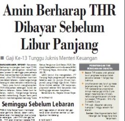 PNS di Kota Banjarmasin mendapat kabar gembira. Sebab, dalam waktu dekat akan mendapatkan dua tunjangan sekaligus, yakni THR dan gaji ke-13.