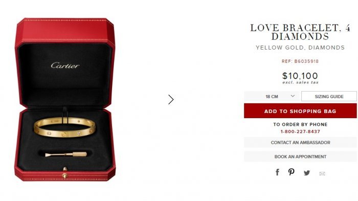 Dalam situs resmi Cartier, gelang tersebut bernama Love Bracelet.