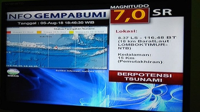 Info tersebut diluncurkan pukul 18:46 WIB. Gempa tersebut berkekuatan 7,0 Skala Richter (SR).