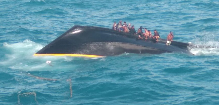 BANJARMASINPOST.CO.ID, SAMPIT - Gelombang hingga empat meter yang menggulung di Laut Jawa membuat kapal nelayan yang ditumpangi sebanyak 13 orang warga Indramayu Jawa Barat ini ikut terbalik, Minggu (5/8/2018).
