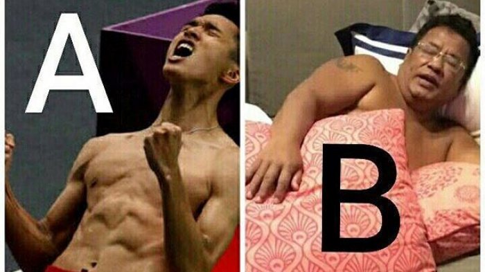 Foto Jonatan Christie diberi pilihan A sementara foto Hotman Paris diberi pilihan B.