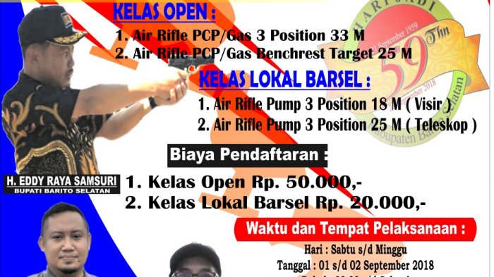 Kelas open Air Rifle PCP/ Gas 3 Position 33 M, dan Air Rifle PCP / Gas Benchrest Target 25 M, selain itu juga ada kelas Lokal Barsel yakni Air Pump 3 Position 18 M (Visir), Air Rifle Pump 3 Position 25 M (Teleskop).
