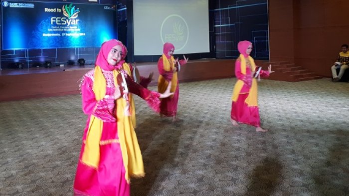 Berbagai judul tarian bertema Syar'i dibawakan untuk memukau para Dewan Juri Fesyar Kalsel 2018 yang termasuk diantaranya Kepala KPw BI Kalsel, Herawanto dan seniman serta Dosen dari UIN Antasari Banjarmasin dan ULM.