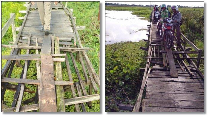 Titian Desa Hambuku Lima HSU Rusak Parah, Hampir Semua Guru Pernah Terperosok