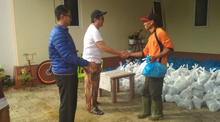 Pengusaha terkenal di Bumi Murakata, Chairul Fahmi, menyerahkan bantuan 250 paket sembako kepada pasukan kuning.