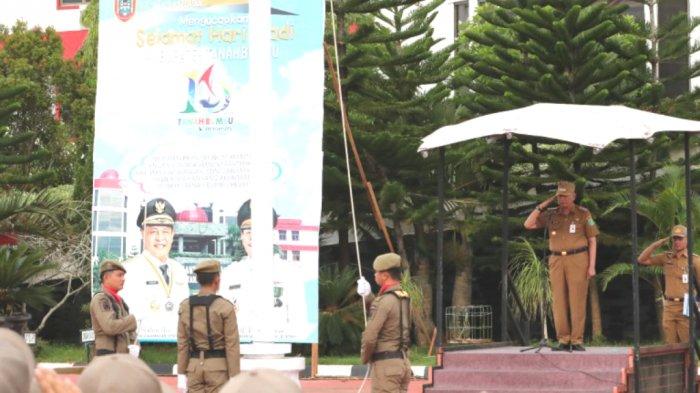 Upacara peringatan berlangsung di halaman kantor Bupati Tanbu, Senin (1/4/2019). Di pimpin Wakil Bupati H Ready Kambo sekaligus sebagai inspekstur upa