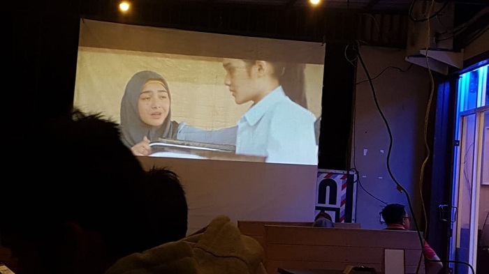 Jelang masa tenang kampanye, Relawan Demokrasi (Relasi) Basis Komunitas menggelar nonton bareng film Suara April di satu cafe.
