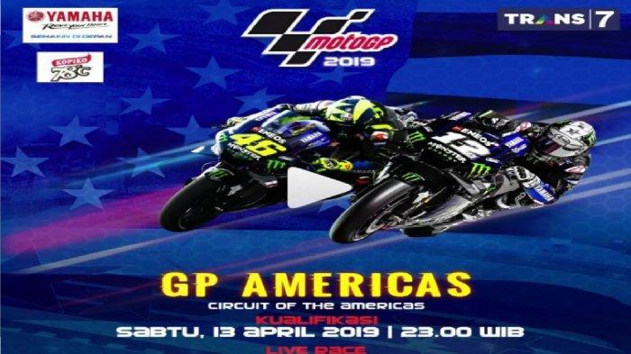 Menurut jadwal, race MotoGP America 2019 Sirkuit Circuit of the Americas akan disiarkan langsung Trans 7 dan bisa disaksikan melalui live streaming Trans 7 di vidio.com