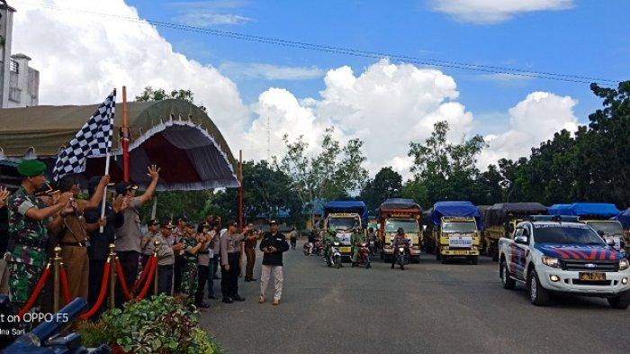 Dalam pelepasan truk pengangkut logistik juga turut hadir bupati Tanahlaut H Sukamta yang turut melepas pergeseran logistik pemilu.