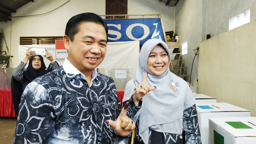 Pesta Demokrasi, Wali Kota Banjarmasin dan Istri Celupkan Jari Telunjuk dan Jempol Pascacoblos