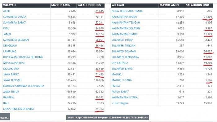 Dari data di hitung suara versi KPU itu, di Tampilkan hingga pukul 10.00 Wita untuk Kalsel hasil Pilpres masih dimenangkan Calon Presiden nomor urut 02 alias Prabowo-Sandi dengan suara