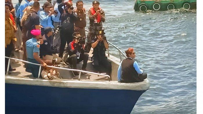 BANJARMASINPOST.CO.ID, MEMPAWAH - Menteri Kelautan dan Perikanan RI Susi Pudjiastuti saksikan langsung pemusnahan barang bukti 13 kapal ikan Asingpada Sabtu (4/5/2019) siang di perairan laut Pulau Datuk.
