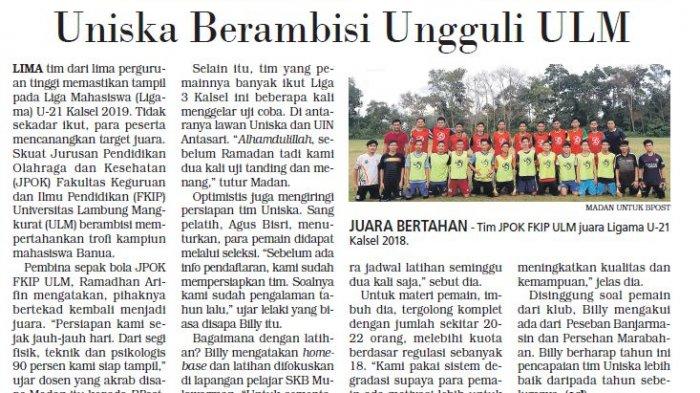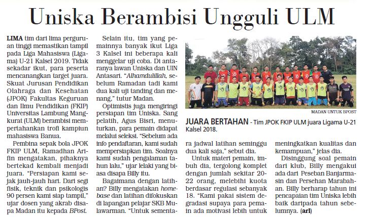 Persiapkan Tim, Uniska Berambisi Ungguli Juara Bertahan JPOK ULM di Ligama U-21 Kalsel 2019