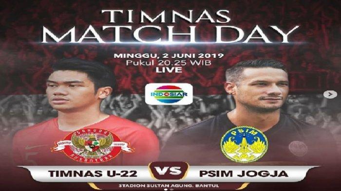 Siaran langsung dan Live Streaming Indosiar Timnas U-23 vs PSIM Jogja dapat ditonton mulai pukul 20.25 WIB, seperti dilansir Bpost Online dari laman instagram resmi Indosiar.