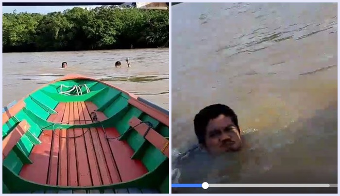 Video yang diambil dari sebuah kapal kayu itu, memperlihatkan dua orang yang tercebur ke Sungai Mahakam.