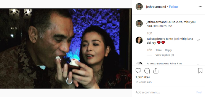 "Lol so cute, miss you dad. #NumeroUno," tulis Jethro Armand.