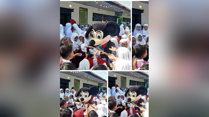 "Badut Mickey Mouse hampir pingsan karena diserbu anak-anak," selorohnya.