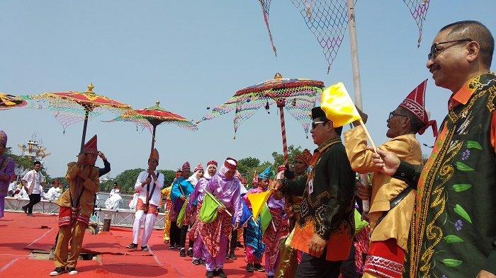 Pantauan Banjarmasinpost.co.id, sejak acara dimulai panitia sempat menyuguhkan tarian daerah kolosan. Mengenakan pakaian ada beberapa provinsi, mereka tampil menghibur para tamu undangan di tenda utama.