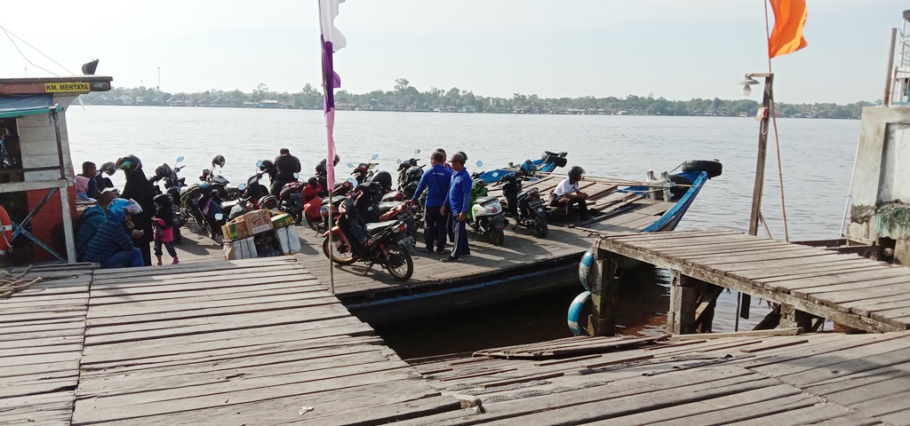 Sebelumnya warga Seberang ini, menunggu antrean untuk naik ke dermaga termasuk menempatkan sepeda motor ke atas kapal feri penyeberangan, dengan membayar uang Rp 5000 perorang kepada motoris.
