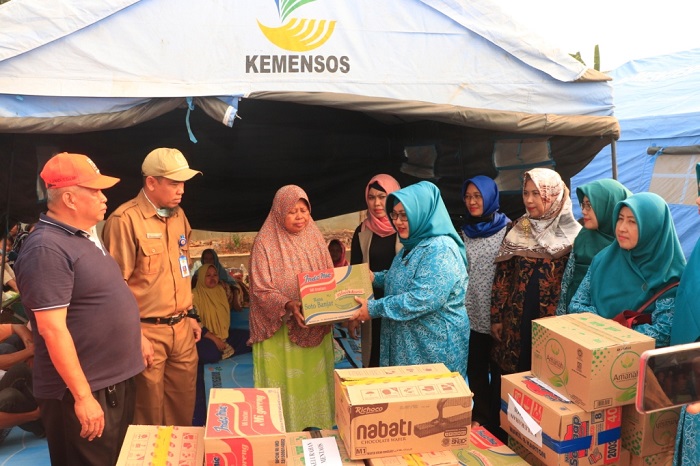Ketua TP PKK Kota Banjarbaru Hj Ririen Nadjmi Adhani didampingi Pengurus TP PKK Kota Banjarbaru langsung bergerak cepat meninjau lokasi kebakaran serta memberikan bantuan berupa sembako dan juga pakaian layak pakai untuk para korban musibah kebakaran.