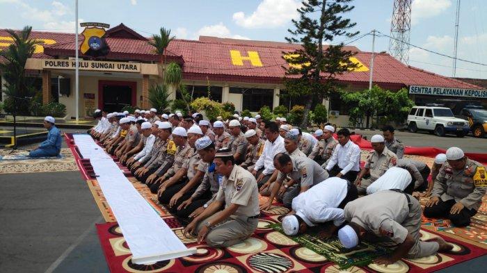 Salat Istisqa dilaksanakan jajaran Polres Hulu Sungai Utara (HSU), Senin (23/9/2019) di halaman mapolres setempat.