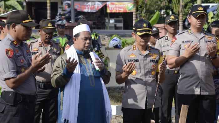 Saat Kapolres Banjar AKBP Takdir Mattenete meletakkan batu pertama pembangunan Musala Al Hijrah di lingkungan Polsek Mataraman juga tampak Ustad Habib Akhmad Al Bhaghaiz, ulama dari Mataraman ini tampak khusyu mendoakan pembangunan Musala Al Hijrah.