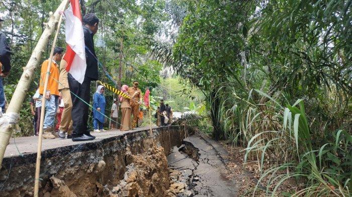Ada sekitar kurang lebih 30 meter panjang jalan yang mengalami ke longsoran. Terlebih itu merupakan jalan beraspal.