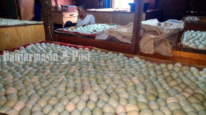 BANJARMASINPOST.CO.ID, AMUNTAI - Deretan telur itik nampak tersusun rapi di beberapa wadah kayu terbuka yang di bagian dasarnya dialasi dengan tikar purun.