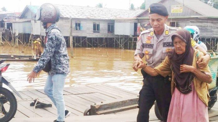 Humanis, Kapolsek Kapuas Hilir Bantu Warga Lansia Naik ke Feri Penyeberangan