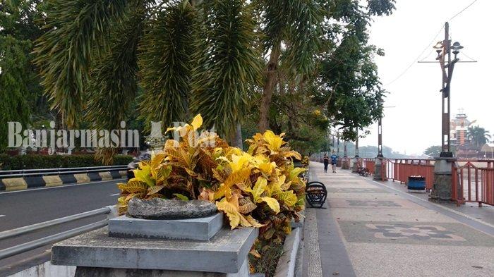 Pot Tanaman Hias Rusak di Taman Siring Banjarmasin Curi Perhatian Pengunjungnya